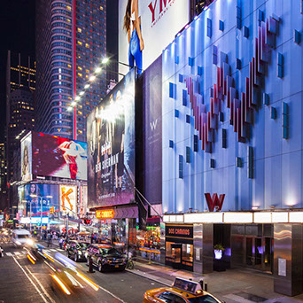 A conversion of a partially complete hotel, originally designed as the Planet Hollywood Hotel, to meet the new programming and W Hotels standards. The 57-story 509-key hotel was upgraded throughout, including fully re-designed guestroom bathrooms. Substantial alterations included the creation of a bi-level 300-seat restaurant; a separate nightclub and screening room; a meeting room floor; reconfigured hotel entry, lobby and retail spaces; complete reconfiguration of the kitchens and back-of-house; the elimination of multiple fan rooms through the consolidation of ventilation systems; and new façade treatment for Time Square Signage.