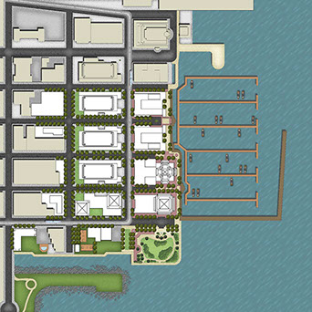 Recognized for the Colgate Clock and former Corporate Headquarters, world-renowned manufacturing company Colgate-Palmolive pioneered a vision to redevelop 42-acres of Jersey City’s Downtown waterfront, overlooking Downtown Manhattan across the Hudson River. Through a 5-year entitlement approval process with the city, the Master Plan consists of 7 million square feet of commercial, office, residential, retail and community facilities. The Master Plan build out played an integral role in the renaissance of Jersey City’s community through the implementation of transit and pedestrian access. Twenty five years later, the Master Plan has been completed. A comprehensive urban design guideline has been published.