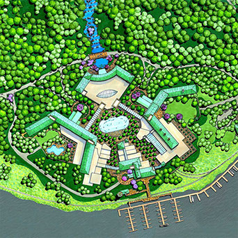 A Master Plan for a 700-acre multi-phase golf community located on the Thames River, just south of the existing Mohegan Sun resort property in Uncasville, Connecticut. The 5 million square foot development concept includes 2,500 guestrooms across 5 hotels (two of which are 5-star), 2,000 residential units comprised of villas and condos, and various amenities for entertainment, retail, spa, casino, and a professional 18-hole golf course.