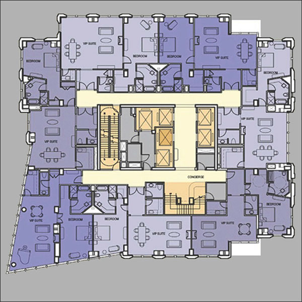 A 20-story, 300-key hotel with two full floors of suites for VIPs and “high-rollers”, and a top floor bar and restaurant club. The base of the tower features a fitness center with lap pool and spa facilities and a floor of executive meeting rooms that have direct access to the Event Center and Casino. Both the pool and the meeting rooms have extensive views of the resort and surrounding landscape.
